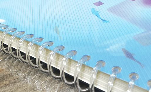 링제본의 한 종류로 하나의 코일로 인쇄물의 타공된 구멍의 시작부터 마지막까지 연결하는 방식입니다. 크리스탈링제본 이라고도 불립니다.